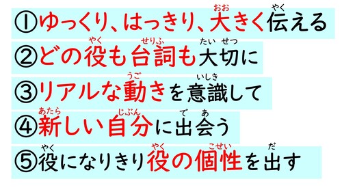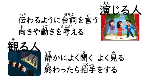 先生方が、こどもの頃などに、劇でどんな役を演じて、どんなことを学んだのかも紹介しました。