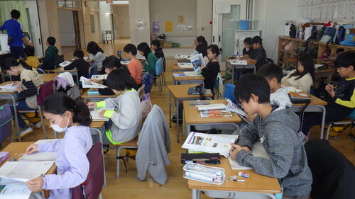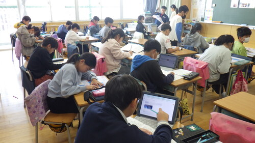 もう一つのクラスでは、理科のテストの後、タブレット端末で学習を進めていました。(自分のするべきことを黙々と進めていました。学期末は、テストが多くなってきます。)