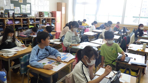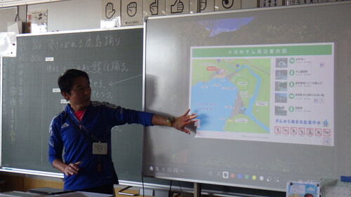 4年生の教室をのぞくと、社会科の時間に、小河内の「鹿島踊り」を題材にして、東京都の地域と文化について学習していました。