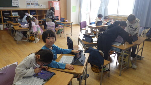 タブレット端末をうまく使ってオリジナル本を作っていて、とても楽しそうでした。
