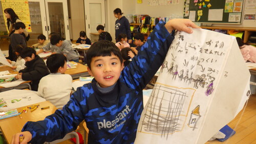 「空に舞う凧」「ぐんぐん成長する動物の赤ちゃん」「寒さに負けず芽を出す植木鉢のチューリップ」どれも1年生の成長のはやさとさらなる成長を予感させます。