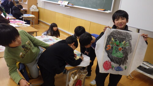 思い思いの絵を描いた凧が、うまく空に上がるといいね。
