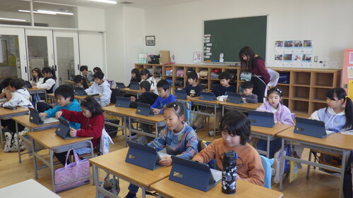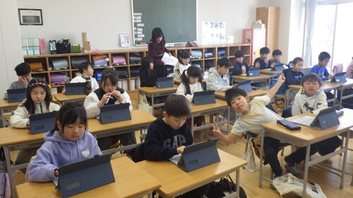 朝の時間が始まったら気持ちを切り替えてタブレット端末を使って、どんどん学習を進めていました。(楽しみながら覚えられるゲーム形式のアプリを使っていました。)