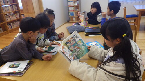 読書の時間は、図書館司書の先生に声を掛けてもらいながら、自分の興味・関心を深める本を読んでいる子が多かったです。