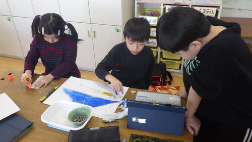 完成した作品についてこどもたちの話を聞いてみると、塗り方によって受ける印象が変わったり、表現の幅が広がったりすることを学んだことが分かりました。