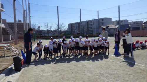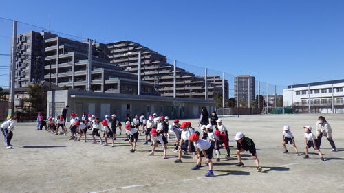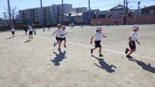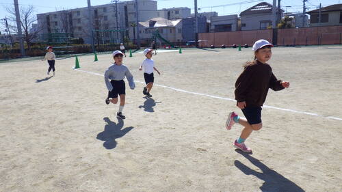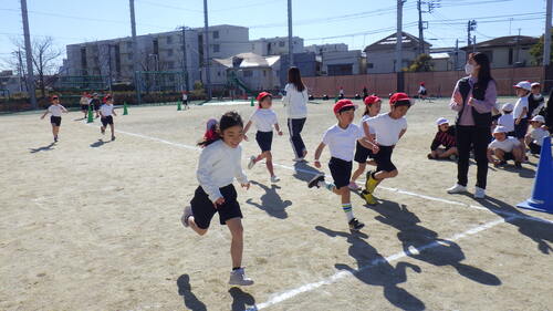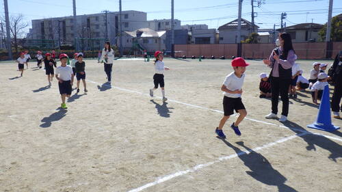 夢中になって走っているあまり、何周走ったのか分からなくなっている子もいました。(何人もの先生で、一人一人に「あと〇周だよ!」と声を掛けました。)