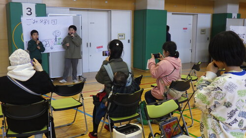 「グループ発表」では、この記事の写真のように、ブースごとに様々な出し物を行っていました。(「お悩み相談」というブースもありました。)