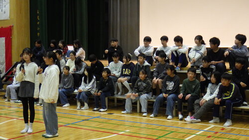 6年生の代表は、ひな壇に座る仲間の思いを背負って、全校朝会での最後の話をしました。