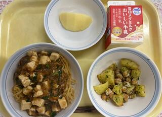献立:ジャージャー麺 牛乳 ビーンズポテト
