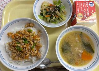 献立:韓国風焼き鳥丼 牛乳 卵入りチゲスープ