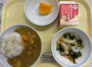 献立:チキンカレーライス 牛乳 海藻サラダ くだもの