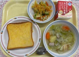 献立:ヨーグルトフレンチトースト 牛乳 ポトフ パリパリサラダ