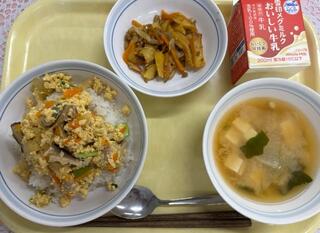 献立:きんぴらごはん 牛乳 千草焼き 味噌汁