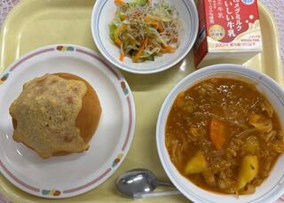 ひとこと:今日は、学芸会児童鑑賞日です。とても緊張していましたが、堂々と演技していました。明日も頑張りましょうね。今日の給食は、カレー味のミートドックです。スープは具だくさんで体が温まります。ホッとしますね。味わって残さず食べてくださいね。