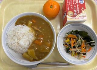 献立:カレーライス 牛乳 わかめサラダ みかん