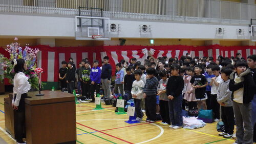 始業式では、6年生が、「児童代表の言葉」の役割を立派に務めました。