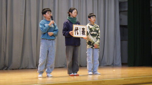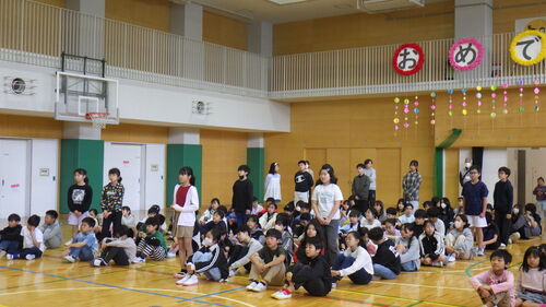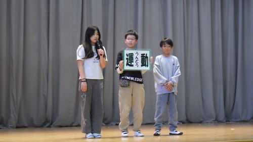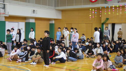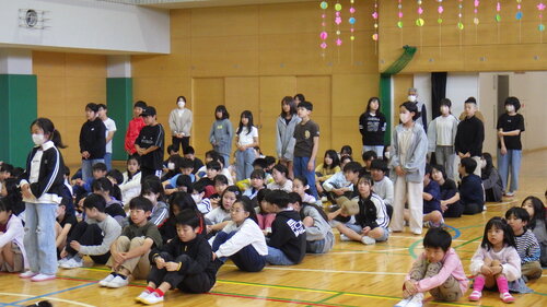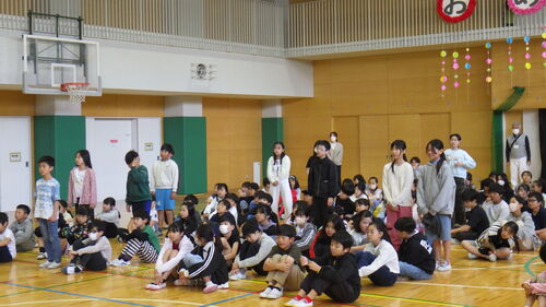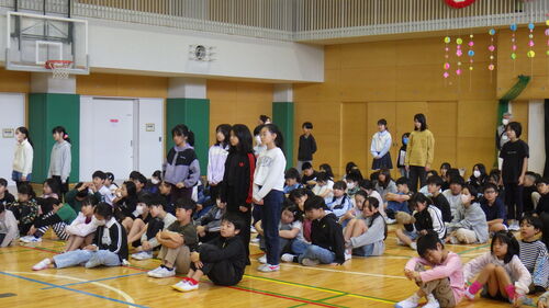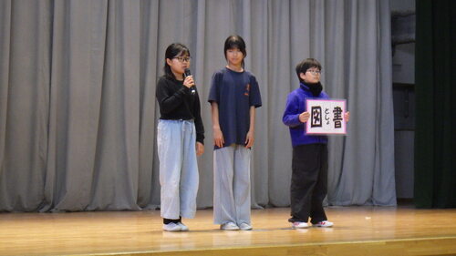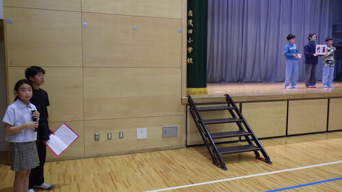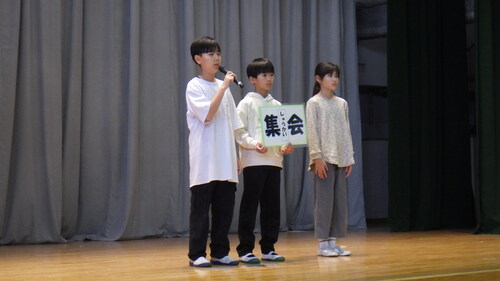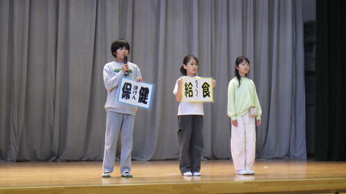 それぞれの写真の1枚目が委員会の代表として舞台に立って話をしたこどもたちで、後方で立って写っているのが各員会の委員です。