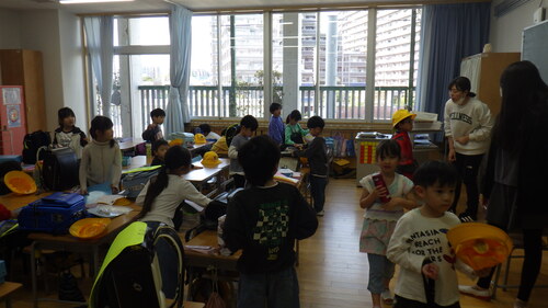 1年生の教室をのぞいてみると、どちらの教室でもきらきらした表情で過ごしている様子が目立ちます。