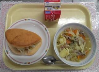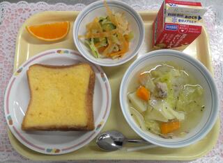 ヨーグルトフレンチトースト  ポトフ パリパリサラダ 清見オレンジ 牛乳