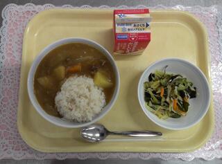 ごはん 海苔ふりかけ 肉じゃが煮 野菜のごま酢和え 牛乳