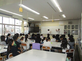授業づくりのパートナーを引き受けてくださった佐伯栄養専門学校の土橋隆延先生に御来校いただきました。5年生が自分で作ることが可能なお菓子のレシピについてレクチャーをしていただきました。就学時健診で来年度の1年生に配布予定のお菓子はどんなお菓子になるのでしょうか?楽しみですね。(校長)