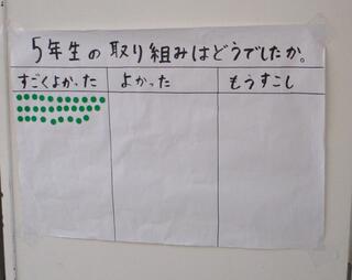 こどもたちは、芝生の校庭を活用した地域との繋がりをつくるために「おまつり」を企画しました。その中で「運動」「遊び」「学習プログラム」「体験」の4つのチームに分かれて具体的な活動内容を考えています。この日は学校公開で、企画内容を保護者の皆様にプレゼンを行いました。保護者の皆様からは、良い点を認めていただいたり、改善に向けた意見をいただいたりしました。こどもたちは、貴重な意見に対して真剣な表情で聞いていました。来週は、「おまつり」企画に協力していただく皆様にプレゼンを行います。どのくらい修正できるか、楽しみです。(校長)
