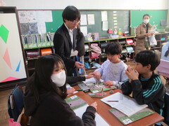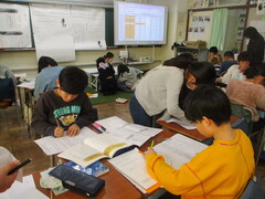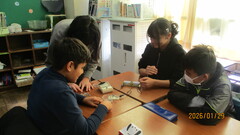 電磁石の力を強くするためにはどうしたらよいか?という問題を解決するために、グループごとに考えた実験方法で試していました。教科書で提示された内容だけでなく、こどもたちが試したい活動ができるように様々な材料が用意されていました。個別最適な学びにつながる場づくりができていました。(校長)