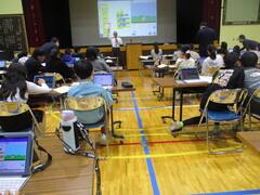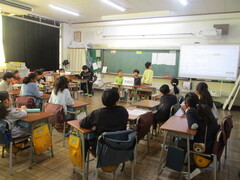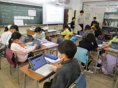 ニッセイ情報テクロノジー様から多くの講師の方に御来校いただき、Scratchを活用したプログラミング学習を実施しました。こどもたちはガイドブックを読んだり、講師の方に教わったりしながら、プログラム作りに取り組んでいました。(校長)