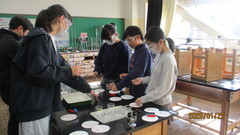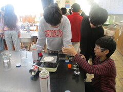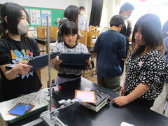 金属板の温まり方を調べていました。その様子をタブレットで撮影し、結果を比べて考察するときの参考にしていました。(校長)