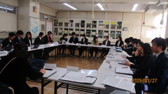 計画実行委員会では、担当の先生から全校ミーティングの説明を聞いていました。(校長A)