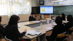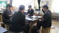教員の授業力向上を目的として、教育委員会指導課の先生方5名が来校されました。先生方には3~5校時に全学級の授業参観を行っていただきました。その後の全体会および分科会では、先生方から教員一人一人に授業へのアドバイスをいただきました。今日の学びを、明日からの授業に活かしていきます。(校長)
