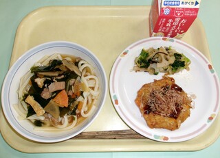 5月22日 木曜 きつねうどん ししゃもとちくわの磯辺揚げ 千草あえ