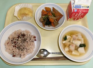 9月4日 赤飯 筑前煮 すまし汁 りんご蒸しパン