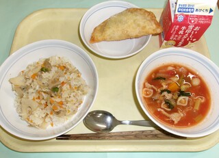 9月12日 金曜 根菜ピラフ ポテトの包み揚げ ミネストローネ
