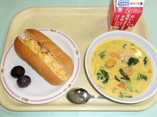 9月17日 水曜 たまごパン かぼちゃのクリームスープ 巨峰
