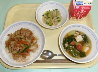 9月3日 チンジャオロース丼 ごまきゅうり 春雨スープ