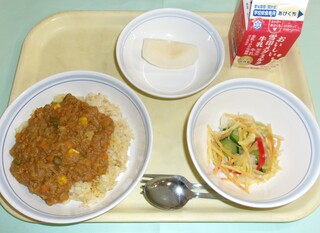 9月20日 土曜 レンズ豆いりドライカレー じゃがいものカリカリサラダ 梨