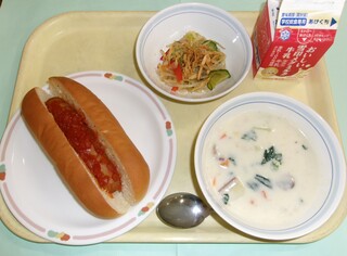 10月7日 火曜 ホットドッグ 揚げごぼうサラダ さつまいもチャウダー