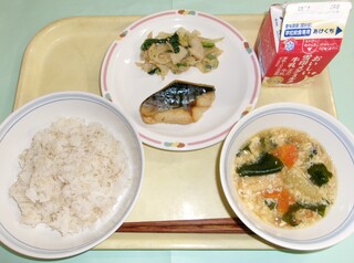 9月5日 麦いりご飯 さばのねぎみそ焼き 千草あえ 冬瓜のとろみ汁