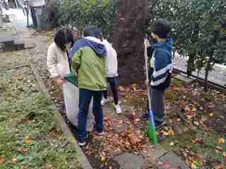 今回は、清掃活動です。秋になり、落ち葉がたくさん落ちる時期なので、東門・西門・裏庭の落ち葉を集めました。