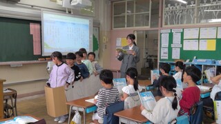 生活科「なつとなかよし」の授業で、夏に楽しむことができる遊びについて考えました。校庭でやってみたい遊びに使えそうな材料や道具を持ち寄り、夏の遊びを楽しみました。ソースの容器を水鉄砲としたり、道具を用いてシャボン玉を作ったりしました。また、「夏の虫を見つけるぞ!」と、生き物探しに夢中になる子もいました。こどもたち一人一人が、自分が考えた夏遊びを実践し、夏と仲良くなりました!