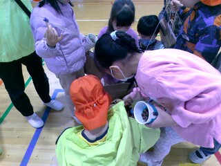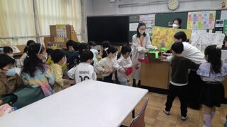 毎月、PTAの保護者の方が、すてきな読み聞かせをしてくださっています。今月は、「ねずみのいもほり」を読んでくださいました。手作りのさつまいもで、お芋堀りを体験!大喜びなこどもたちでした。