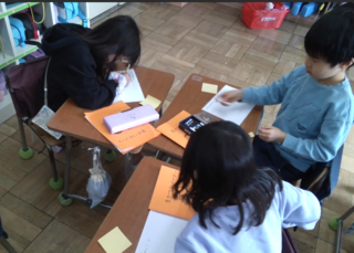 生活「もうすぐ2年生」では、園児さんに「1年生になると、いろいろなことができるようになること」、「小学校は、楽しいところ」と伝えるために、各クラスめあてをたてて準備をしています。交流会では、「学校探検」や、「ランドセル体験屋」「図工屋」など様々なお店を出します。園児さんの立場になって、くり返し練習を重ねるこどもたちの表情は、とても逞しく、お兄さん、お姉さんの目をしています。活動の日がとても楽しみです。