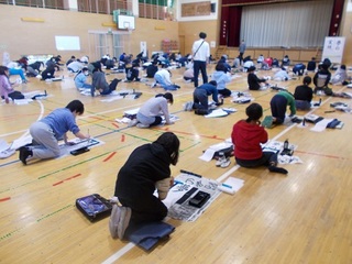 書くことに没頭していて、体育館に大勢の人数が集まっているとは思えないほど、静かに取り組んでいました。