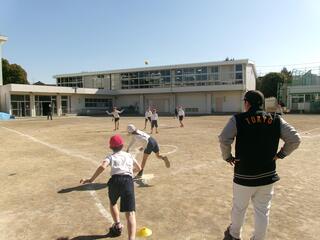 2月4日(木)にジャイアンツ野球教室がありました。ジャイアンツアカデミーから3名の先生をお招きして、ボールの投げ方を教えてもらいました。その後、各クラス2チームに分かれて、ゲームを行いました。教えてもらったボールの投げ方や、キャッチの仕方を生かして、ゲームを楽しみました。