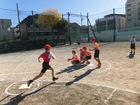 4年生の校庭体育では、「ハンドベースボール」を行っています。