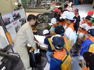 10月3日(火)に社会「工場とくらし」の学習で、株式会社大野製作所を訪ねました。船の部品制作の仕事をしていることや、大きな機械を使ってミリメートル以下のずれも許さずに品物を作り上げていることを知り、大野さんの工夫や努力、やりがいなどについて実際に聞くことができました。