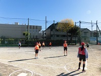 4年生の校庭体育では、「ハンドベースボール」を行っています。