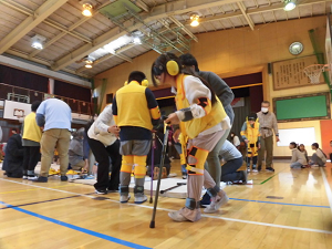 12月1日(月)体育館で4年生が総合的な学習の一環で「高齢者体験」を行いました。