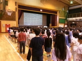 今日は、音楽朝会でした。声を大きく出すところや、きれいな音色を出し続けるところなど、細かなポイントを意識して歌っていました。